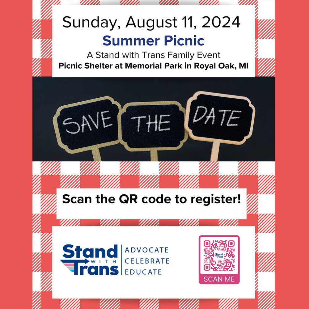 Join Stand with Trans for the return of our annual family picnic! For 10 years, the Stand with Trans Family Picnic has been the heart of our community — a joyful, in-person tradition that brings together trans youth, families, and allies from across Metro Detroit and beyond. While much of our programming has shifted online since COVID, this gathering remains a powerful reminder of the importance of connection, visibility, and celebration.